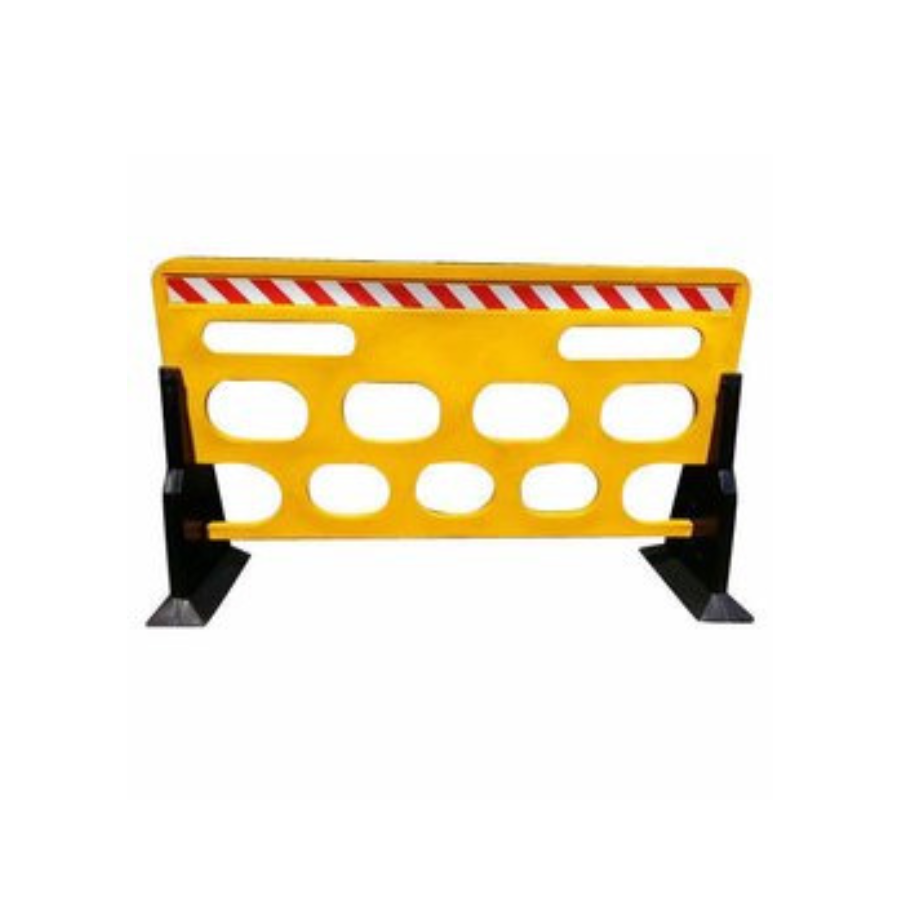 Road Barriers are made from LLDPE UV-stabilized plastic, ensuring durability and weather resistance. They feature a 3-piece construction, designed for safety and stability.