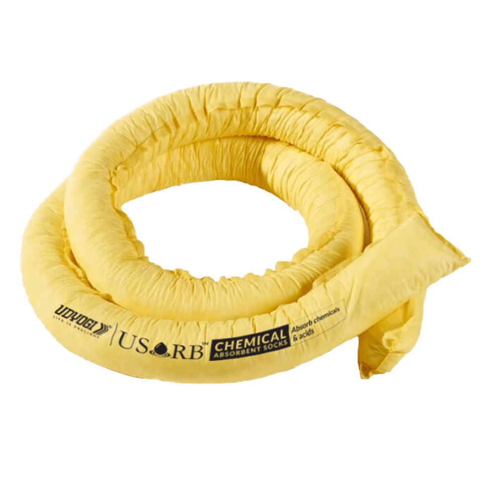 These Chemical absorbent socks are dust-free Don’t leave fibers in the liquid Easy to fold and put around machinery or structures Helps prevent leaks/spills from spreading to adjacent areas Ideal for placing around equipment, use for on land, indoor purpose, also ideal to get out enormous scope spills in the workplace Easy to use during a spill accident Designed to contain constant drips or leaks Helps holding high capacity liquids Outer skin reduces dust exposure and tearing High Capacity Chemical absorbency