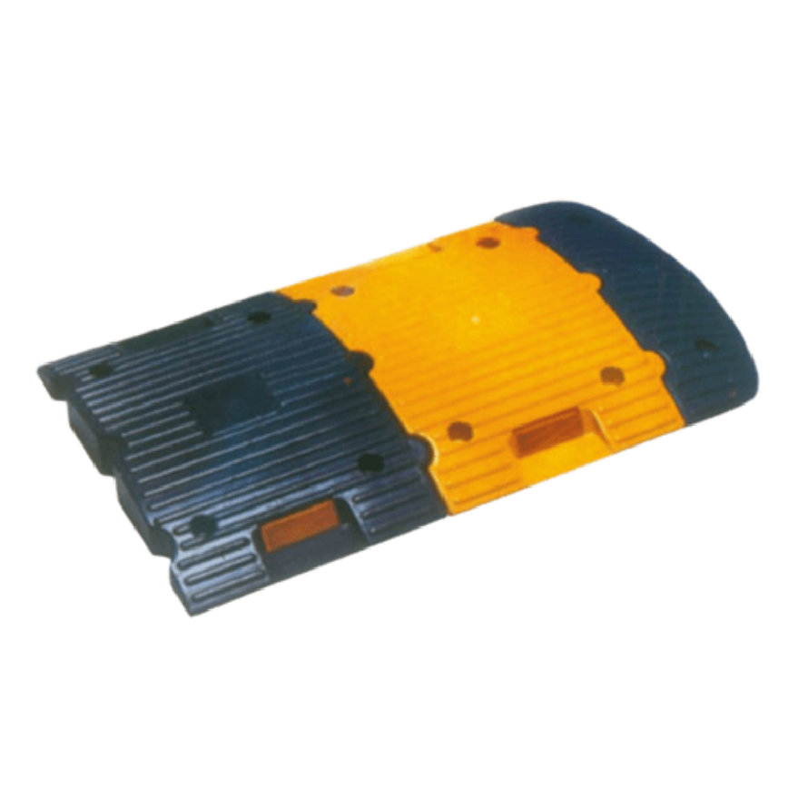 DARK EYE Plastic Speed Bump designed so dynamically and compact that it can bear maximum load on it. It is made of PE plastic material. Two highly reflective reflectors moulded in PMMA material welded with ABS base plate through ultrasonic welding process and then fixed on the speed bump so that dust and water cannot touch the reflector’s inside area and thus it maintains its reflectivity for a long time. 4 Nos. metallic bolts are used for instalation on road. Available in Yellow & Black Colours.