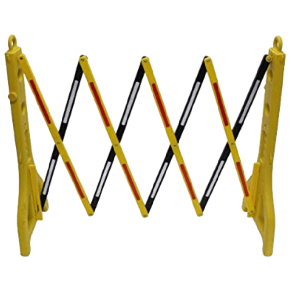Height 3ft and expanded 9ft 360 degree movable wheel Color option available Redium striping for barricade beatification