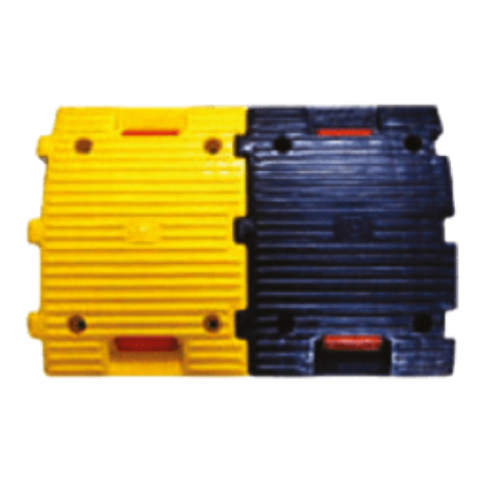 Made of sturdy Plastic, Dark Eye speed Bumps are highly resistant to Severe impacts and harsh weather conditions. Its dovetail interlocking Subunits make it bind perfectly into one firm mump. The pre-coloured Material and UV stablisers keep them perpetually Colourful. Studded reflectors on either side, these Bumps are ideal for private Colonies, hospitals, schools, universities, airports, security check posts, Parking areas, loading sites etc. in cities. Available in Black/Yellow combination Dimension : 500mmx425x75mm
